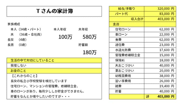 30代共働きTさん夫婦の家計簿診断~その内訳は?