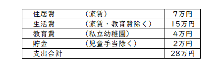 例 夫婦ともに30代、子供1名 幼稚園~小学生(福岡在住)