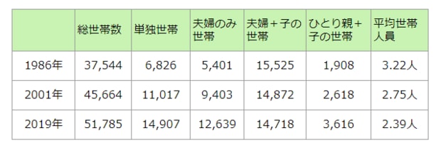 2019年時点で夫婦+子の世帯数よりも単独世帯の方が多くなっているのです。今や一人で生活するスタイルを「一般的」と呼ぶべきなのかもしれません。