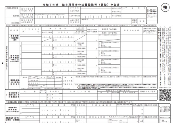 【資料1】令和7年(2025)分給与所得者の扶養控除等(異動)申告書