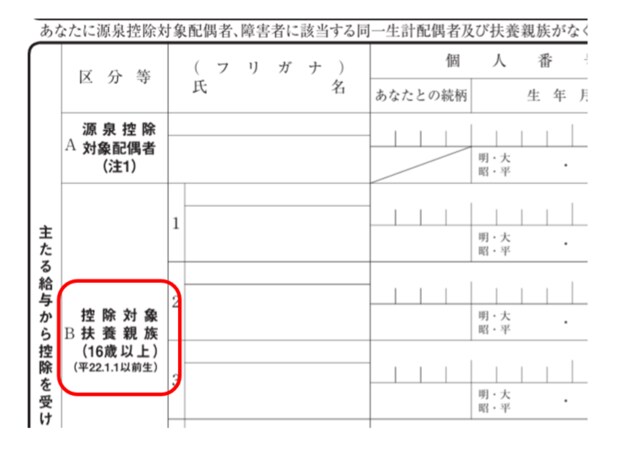 次に、子供の扶養に関する「B控除対象扶養親族」欄です。