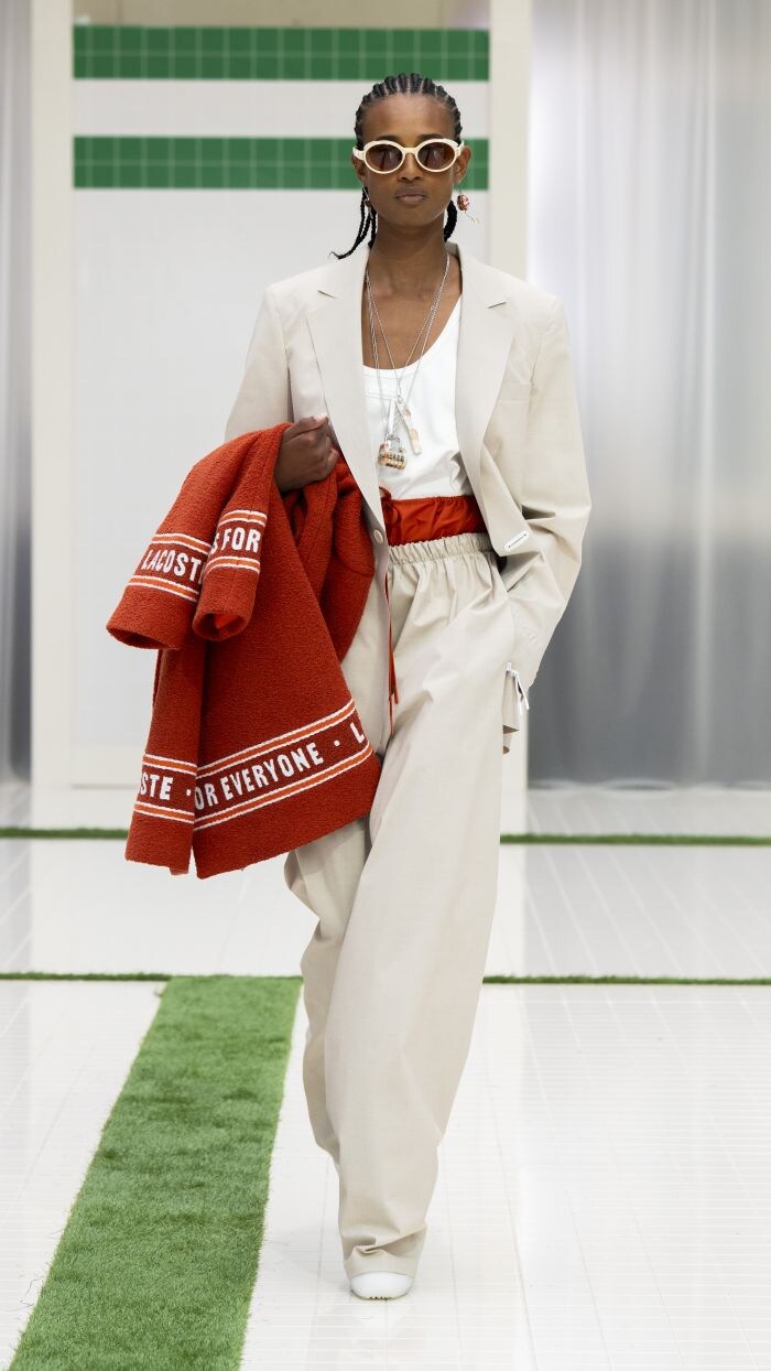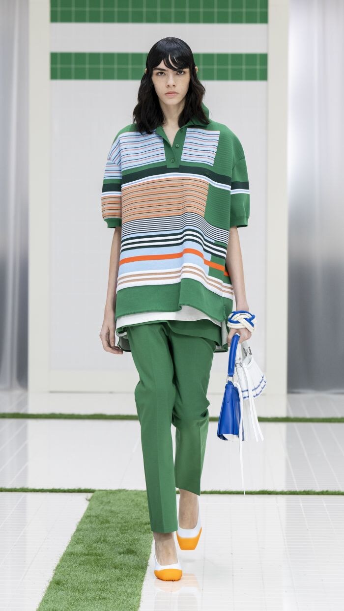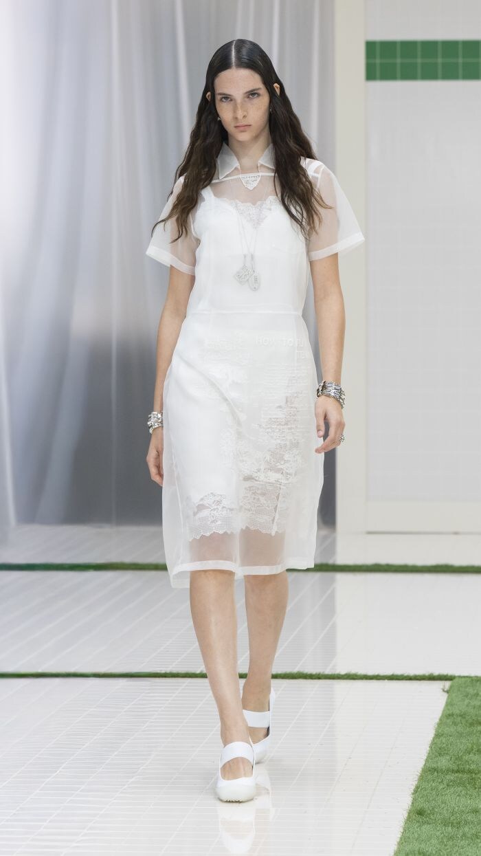 クリエイティブ・ディレクターのペラジア・コロトロスはスポーツにエレガンスや軽やかさを組み合わせ、テーラードコートなどにまで服の範囲を広げ、オーバーサイズのポロシャツなど、ポロシャツも再解釈。ラストでは透明感のあるコートに花の刺しゅうを加えるなど、繊細さも演出されていました。