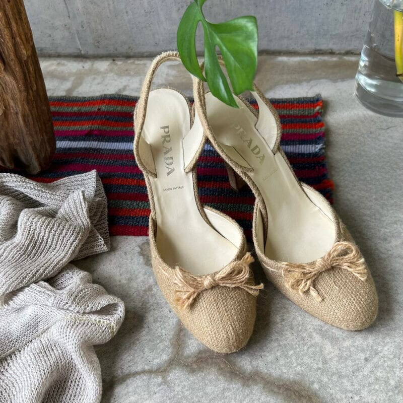 欧米へ旅をする時には靴を買って帰ろうと思っています。PRADAのヘンプのパンプスは随分以前のものですが、旅先で購入したものでとても気に入っています。季節が外れている時には、靴箱の蓋を開けて静かに愛でるのです。「あなたみたいにチャーミングな靴は見たことがないわ、本当よ。このままずっと綺麗でいてね」