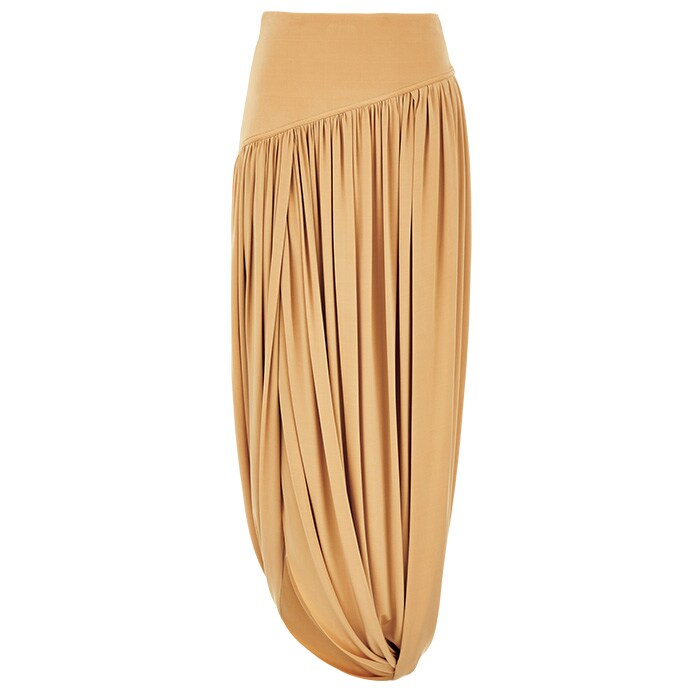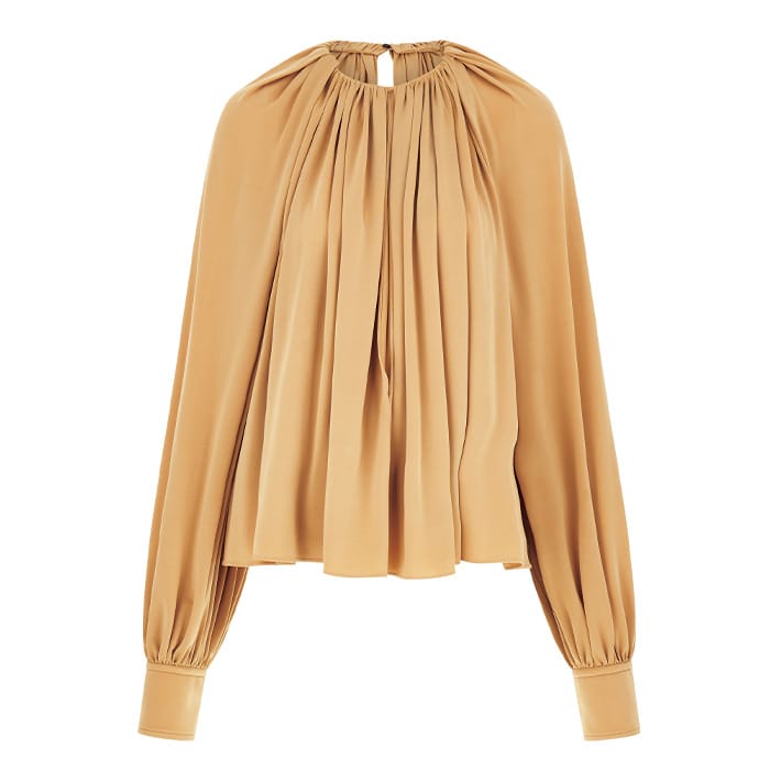 しなやかなシルク生地が描くギャザーとドレープが優雅。