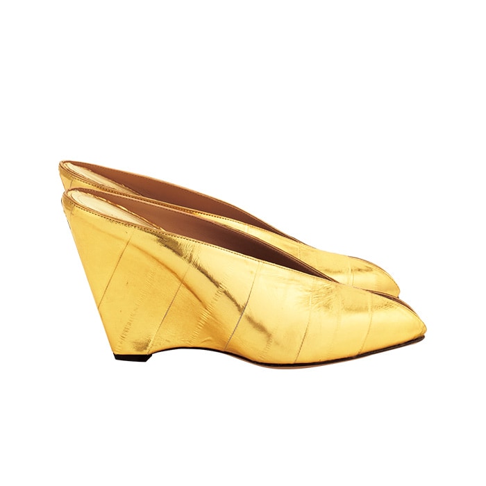 アーカイブにインスパイアされた一枚のレザーで足を包み込むデザイン。ゴールドカラーでホリデー気分を盛り上げて。