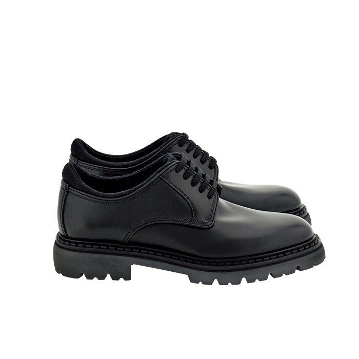 シンプルなレースアップシューズをラバーソールで軽やかに。パッドが入った快適な履き心地も魅力。