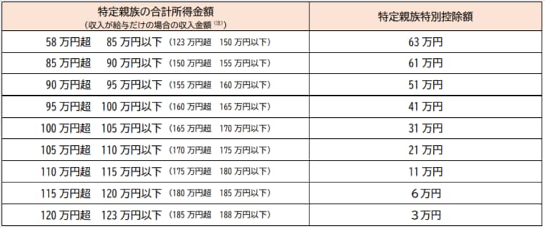 19歳以上23歳未満の扶養親族(大学生など)がいる場合、その扶養親族の所得に応じて、以下の控除が認められるようになりました。