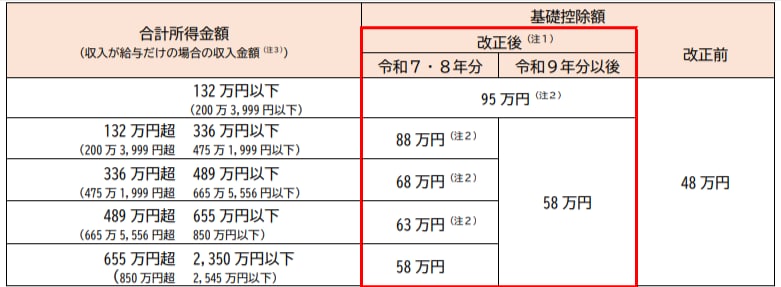 国税局作成「令和7年度税制改正による所得税の基礎控除の見直し等について(源泉所得税関係)」より一部抜粋