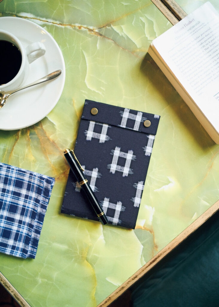 〈ポスタルコ〉の定番スナップパッドに新柄を発見。シンプルな幾何学模様はどこか懐かしく、それでいてモダンさも感じられて、不思議な魅力に惹き込まれた。聞けば久留米かすりの生地を使用していて、200年以上にわたり受け継がれる藍染めと織りの技術が絶妙な表情を生み出しているそう。このパターンは「井桁」という伝統柄で、井戸のまわりに組まれる木組みがモチーフ。「水を守る」ことから転じて、家内安全の意味が込められている。¥6,820(ポスタルコ 03−6262−6338) その他スタイリスト私物