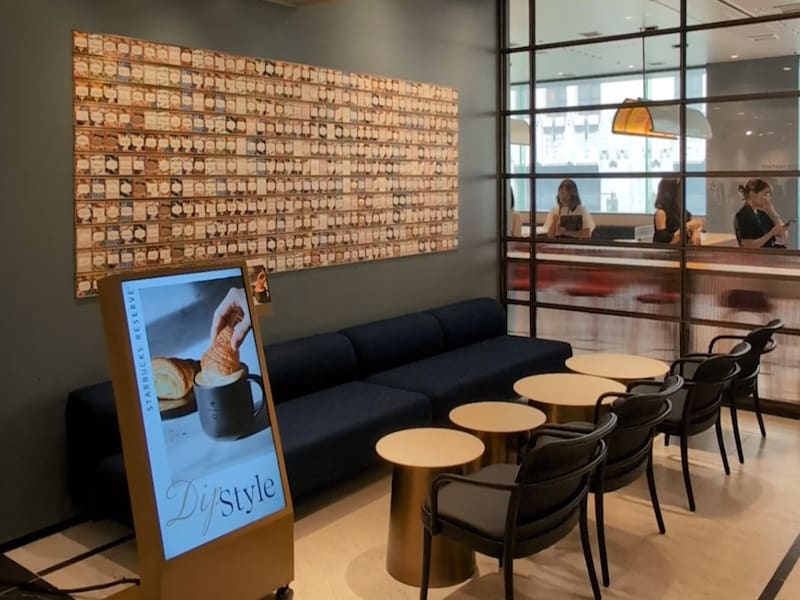 2025年9月にオープンした新業態のスターバックス。ミラノのバール文化と日本の喫茶文化を融合した「Milanese Kissaten」をコンセプトにある開放的な空間があります。
