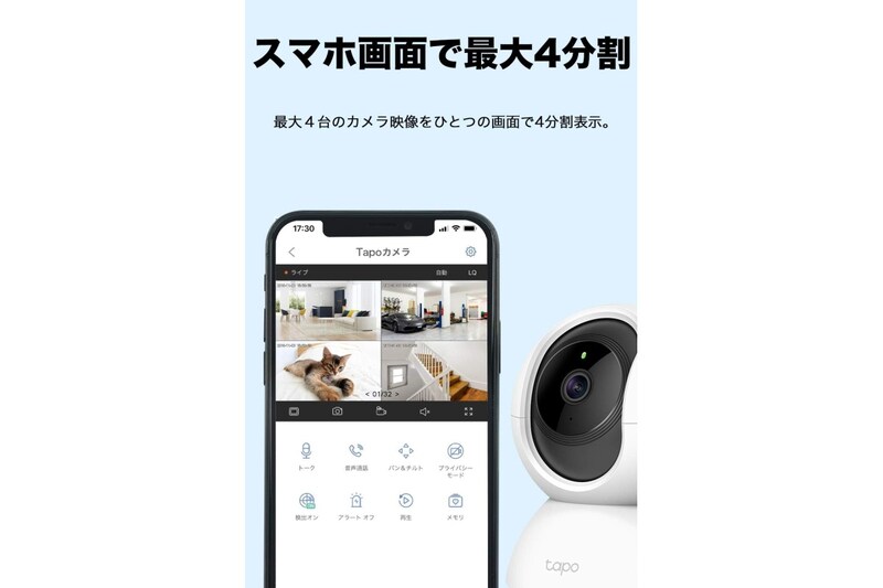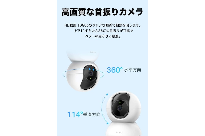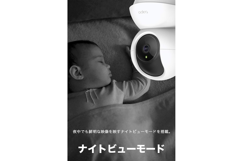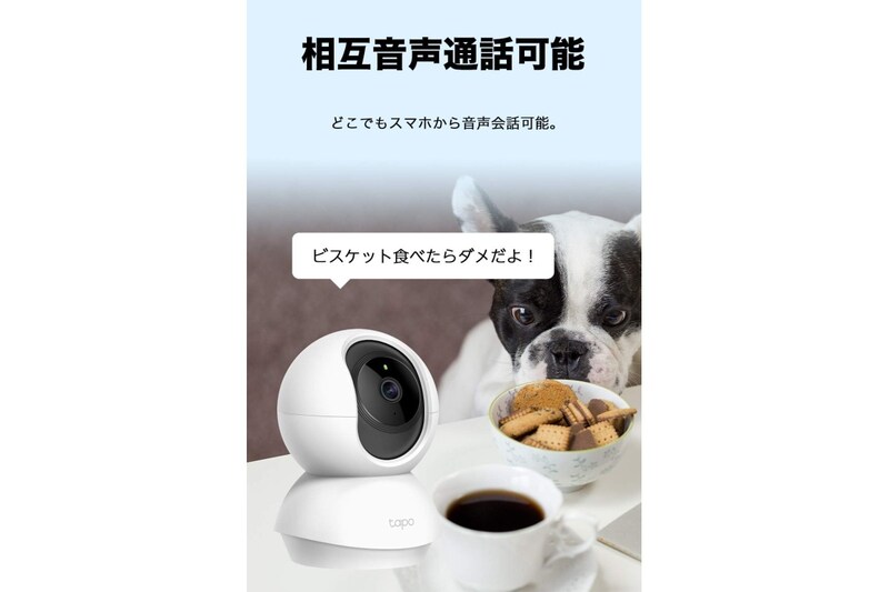 TP-Linkの「Tapo C200」は、スマートフォンから簡単に操作や映像確認ができるWi-Fi接続の室内カメラです。