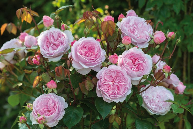数々の賞を受賞したイギリスの小説家にちなんで名付けられた‘ペネロピ・ライヴリー’は、ベリーのような赤いつぼみから、上品なミッドピンクのシャローカップ咲きへと変化し、開花後も薄いピンクからラベンダー色へと移り変わる繊細な花色が魅力です。香りはラズベリーやレモンが混ざり合う、クラシックなバラの芳香が漂います。とても強健で健康に育つ品種で、コンパクトでまとまりのある樹形のため、鉢植えや花壇にも適しています。