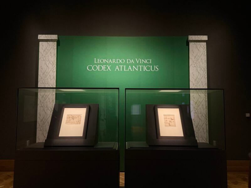 イタリアが世界に誇る天才、レオナルド・ダ・ヴィンチ(1452-1519)。そのアイデアを書き留めた「アトランティコ手稿」は1119枚以上が現存し、保存上の理由からイタリア館では定期的な入れ替えを行いながら展示されていました。大阪市立美術館に展示されている2点は、この特別展で日本初公開となる作品。