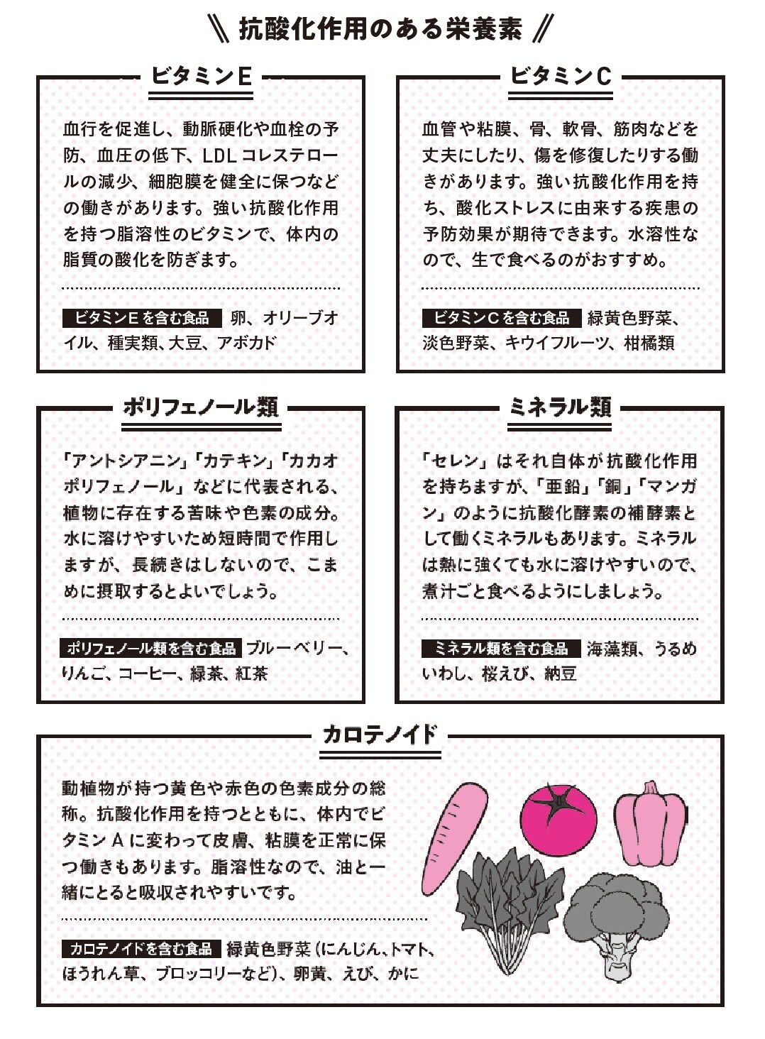 [図表]抗酸化作用のある栄養素 出典:『専門医が教える1分で肝臓から脂肪が落ちる食べ方決定版』(KADOKAWA)より抜粋