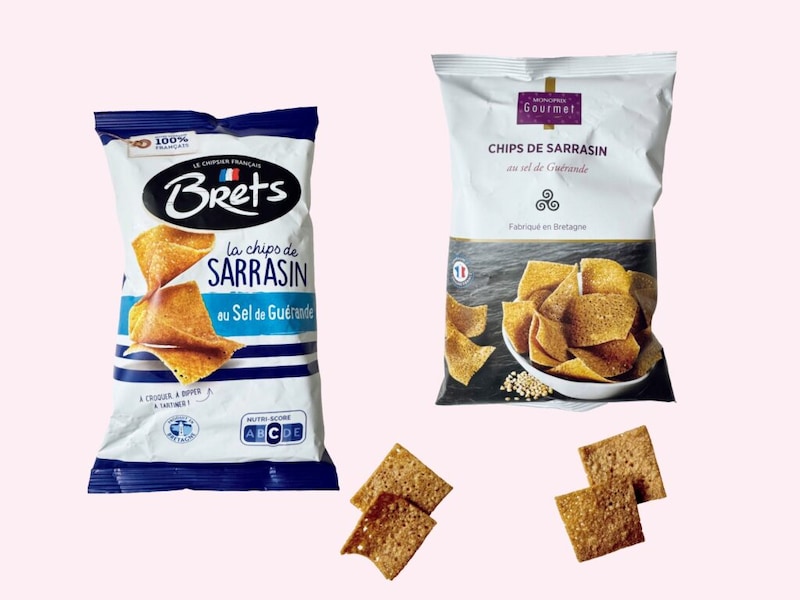 先日、健康志向の友人へのおみやげにスーパー〈モノプリ〉のオリジナル商品、蕎麦粉とゲランドの塩のチップスを持参した。すると「次回はもっと買ってきて」と頼まれるほど好評。主成分の蕎麦粉は食物繊維とビタミンBが豊富で、他のスナック菓子より栄養価が高いところが良いそう。〈モノプリ〉のチップスは生地がきめ細かく、塩味がしっかり効いている。いっぽう〈ブレッツ〉は少し厚めで食感と塩味は控えめ。どちらも蕎麦粉の香ばしさ、歯応えのよさが癖になり、少しだけつまもうと思っても、食べすぎてしまう。ナチョスのようにチーズやアボカドディップと合わせれば、お酒のおつまみとしても活躍。砕いてサラダに散らせば、香ばしいアクセントになる。