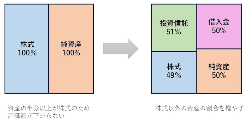 株特外しを行う場合、事業会社の株式以外にも以下のような資産を持つことで、評価額を下げる効果が期待できます。