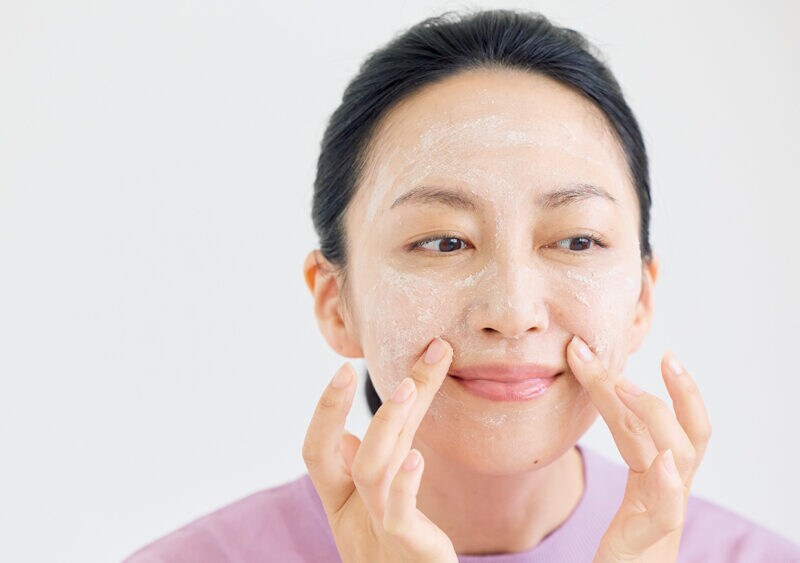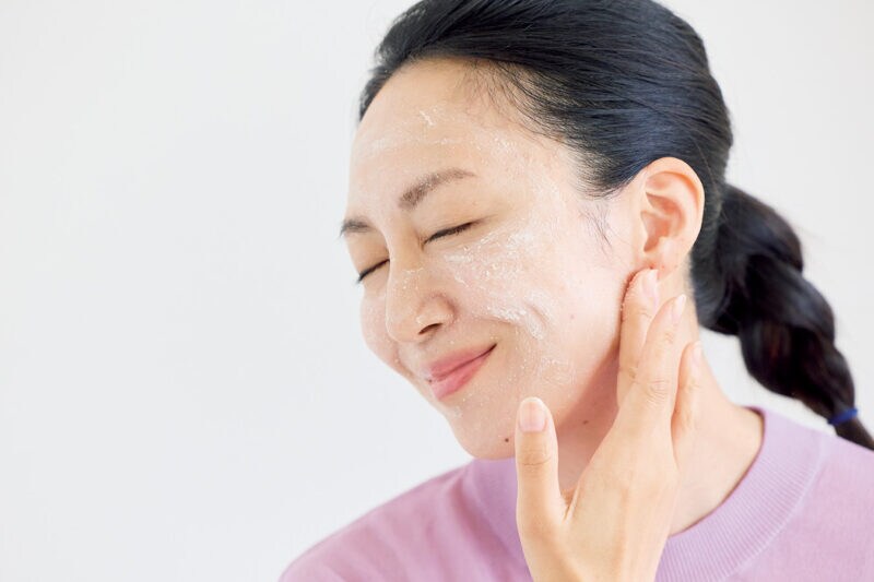 角質がたまって肌がゴワつき、化粧品が浸透しにくくなります。スクラブ入りの洗顔料で、古い角質を取り除きましょう。