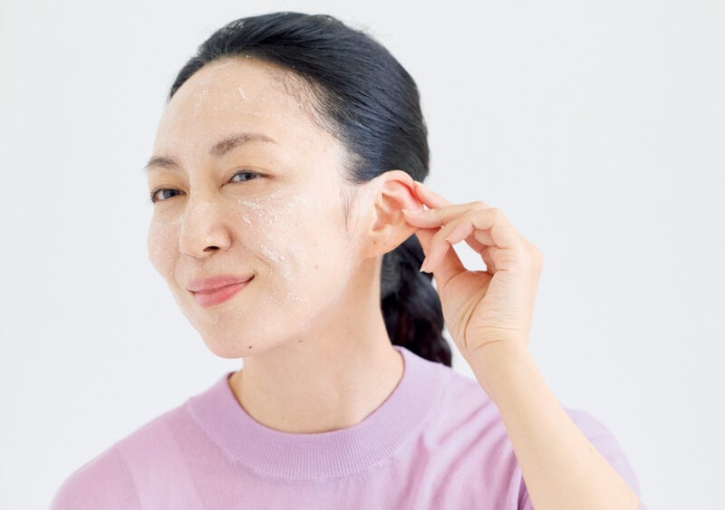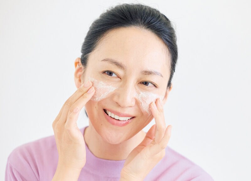 硬くなった肌をスクラブ洗顔料で柔らかくほぐす