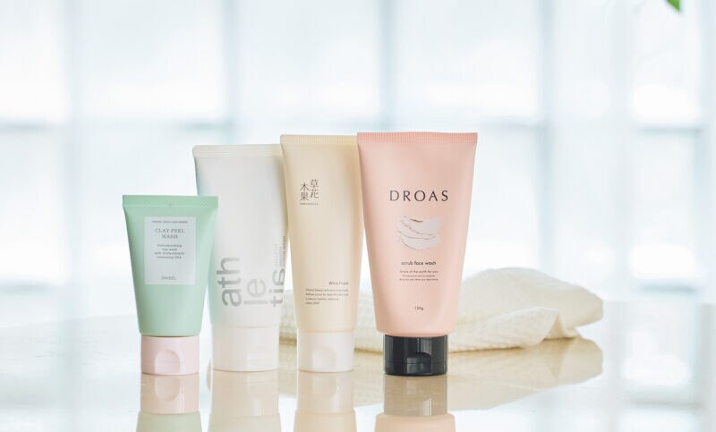 (右)コラーゲンやうるおいキープ成分で、洗い上がりしっとり。ドロアス クレイマイルドスクラブウォッシュ 120g ¥990/I-ne