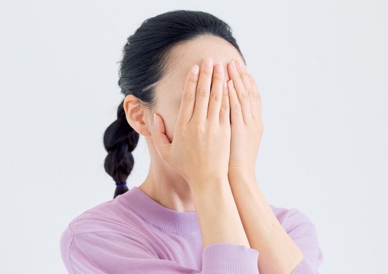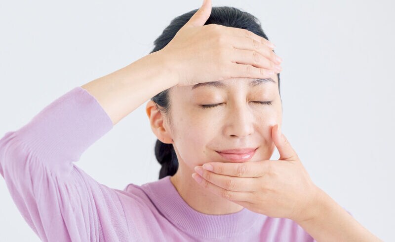 最後にもう一度、手のひらで顔全体をやさしく覆ってプレスを。