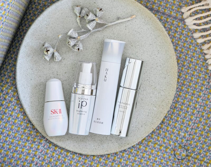 (中左)紫外線を浴びた直後に出される“メラニンを作れ”情報が伝わるのを抑制。ソフィーナ iP ブライトニング美容液 [医薬部外品] 40g ¥6,380(編集部調べ)/花王