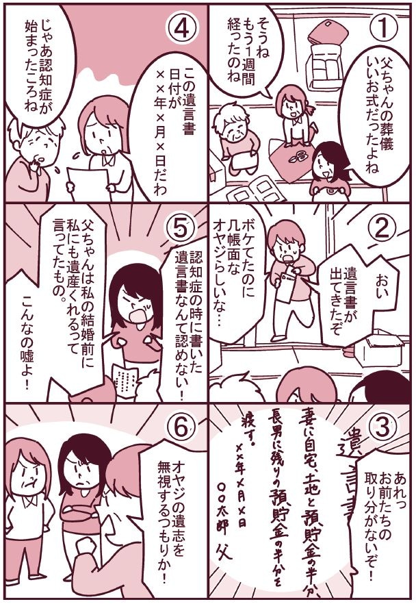 たとえば上記のマンガのケースでは、疑わしい遺言によって相続人である長女と二女が遺留分を侵害されています。このようなとき、遺留分を侵害している相続人(マンガの場合は長男)に侵害額を金銭で請求することができます。これを「遺留分侵害額請求」といいます。