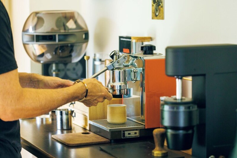 オフィス兼ギャラリーでもほぼ毎日エスプレッソは淹れる。選んだのはパワーはありながら、サイズ感がコンパクトな「GS3」。「シンプルかつ頑丈で頼りになるマシン」