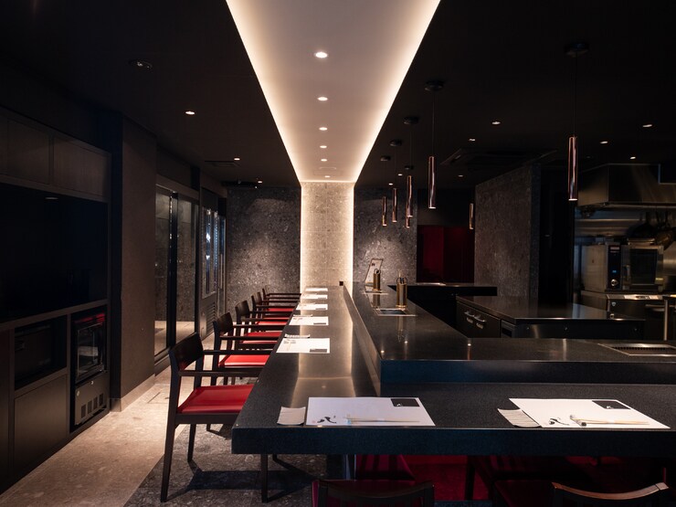 店内は洗練された和モダンな空間になっていて、都会の喧騒を忘れる隠れ家のような雰囲気。ライブ感満載のカウンター席は、焼肉を五感で楽しめる特等席です。このお店の特長は、専属焼き師の存在。各席で丁寧に焼き上げ、一番おいしい瞬間に提供してくれます。焼き師に加え専属サービス担当もいる、特別個室もあります。