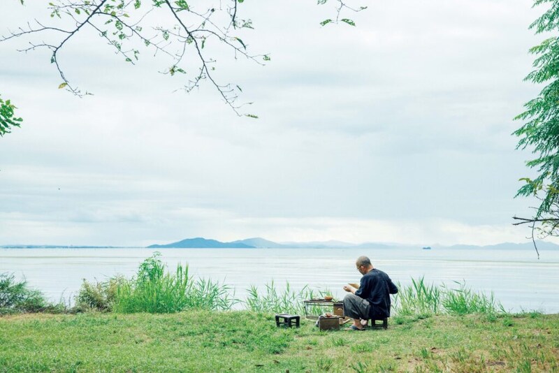 茶道具一式を詰めた茶車を携えて現れ、何もない場所にたちまち茶席をしつらえ、茶を振る舞う。空間も人も、そのひとときの茶の時間へと引き込んでしまう。陶芸家の市川孝さんは、自作の道具とともに、独創的な茶を生み出す茶人でもある。
