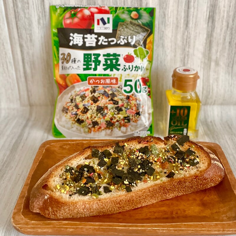 軽やかな植物油のコクと様々な素材の旨みたっぷりのふりかけが小麦本来の美味しさを引き立てていて相性抜群です。