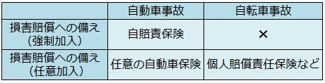 自動車事故と異なり、自転車には強制保険である「自賠責保険」がありません。したがって、自転車事故では任意の保険で備える必要があります。