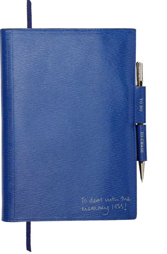 3日坊主で終わることなく、習慣化するには、ペンを走らせる楽しさを体感できる上質な手帳を手に入れることが大切。大人のための遊び心あるステーショナリーで定評がある「アニヤ・ハインドマーチ」のものなら、腕時計のように日常に寄り添う相棒となってくれる。専用のスロットにペンを差し込むスタイルが、カギがついた手帳のようで思わず秘密にしたい思いも書き出してしまうかも。