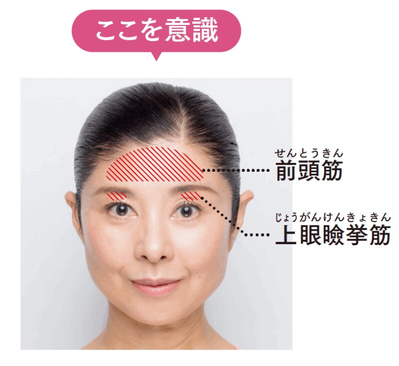 額を動かさずに目を開くクセをつけましょう。