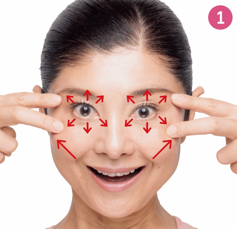 1. 目じりを押さえ口角を上げて笑う