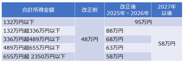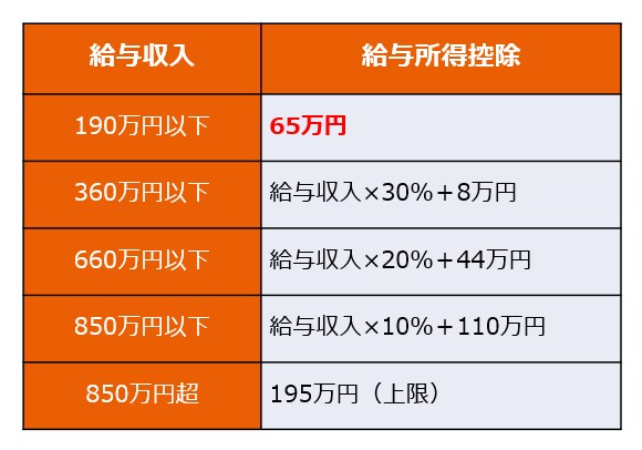 給与所得を計算する上での給与所得控除の最低額は2024年まで55万円でしたが、2025年は65万円と10万円アップします。