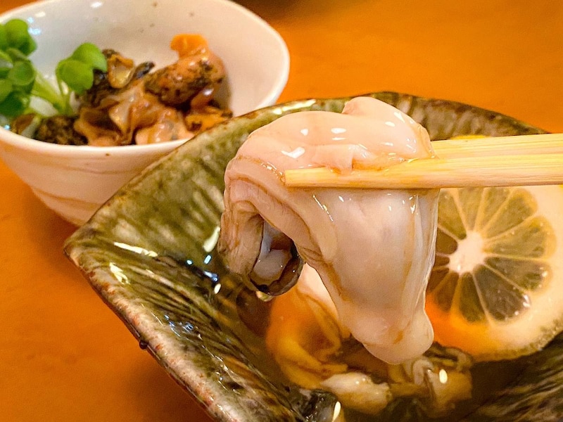 店内はいつの間にか満席になっていることも多く、地元客や観光客で賑わう人気ぶり。炉端焼きやお造り、季節の天ぷらなど、素材を活かした料理が次々と運ばれてきます。なかでも特におすすめなのが「牡蠣酢」。大ぶりでぷりぷりとした身は、ひと口で海の旨みを凝縮したような味わいが広がり、殻に残る最後の一滴まで飲み干したくなるほど。釧路の海鮮の力強さを実感できる一品です。