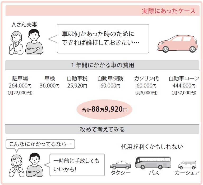 [図表2]車の費用を見直した夫婦の一例 出典:『【図解】医療費・仕事・公的支援の悩みが解決する がんとお金の話』(彩図社)