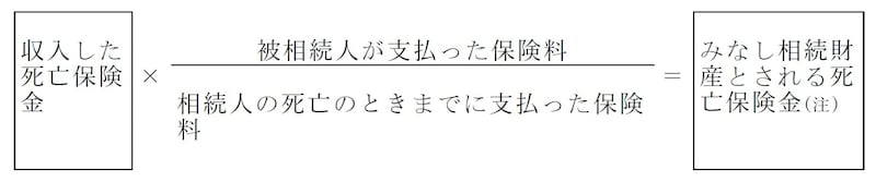 (注)保険料を支払った人が被相続人のみである場合、受け取った死亡保険金の全額がみなし相続財産となる。