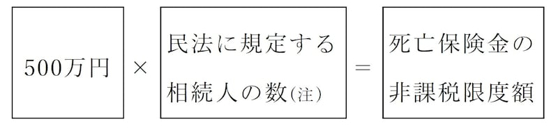 相続人が受け取った死亡保険金には、以下の式で算出された金額までが非課税となる。ただし、この非課税の適用は「相続人」に限られる。