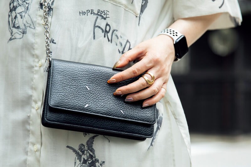 バッグは白ステッチが好アクセントの「メゾン マルジェラ」。
