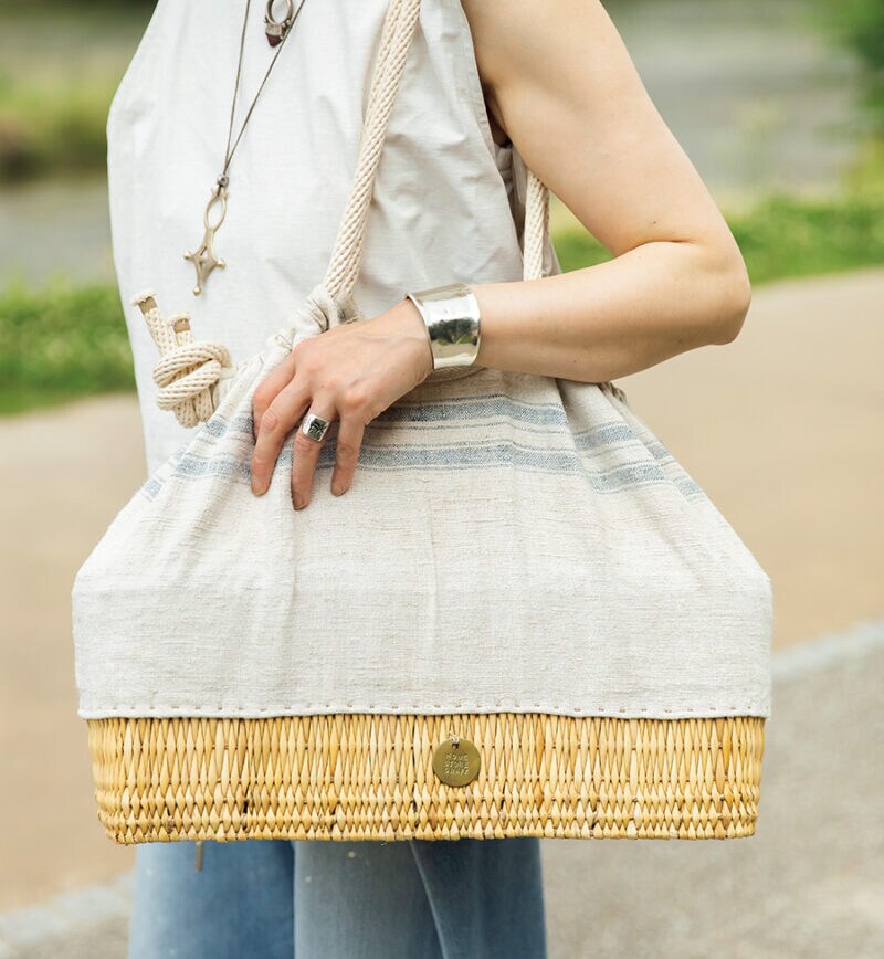 大人世代のフォークロアスタイルは、控えめな色数、アクセサリーの重ねづけ、小物使いが決め手。京都市内は自転車移動の人が多いので、帽子にはストラップが必須!