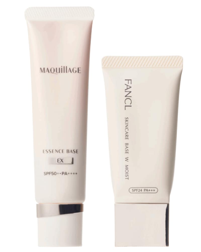 (右)うるおい成分が乾燥によるメイク崩れを防ぐ。スキンケアベース Wモイスト〈ベージュ〉SPF24・PA+++ ¥2,200/ファンケル
