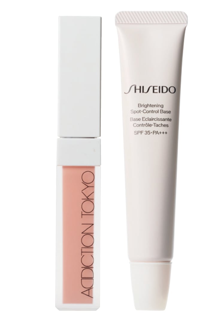 (右)美白有効成分配合。SHISEIDOブライトニング スポットコントロールベース ピンク[医薬部外品] SPF35・PA+++ ¥5,500(編集部調べ)/SHISEIDO