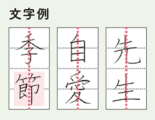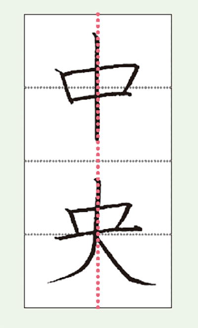 2文字以上書くときは、文字の中心を〝串刺し〟するようなイメージで、そろえて書きます。