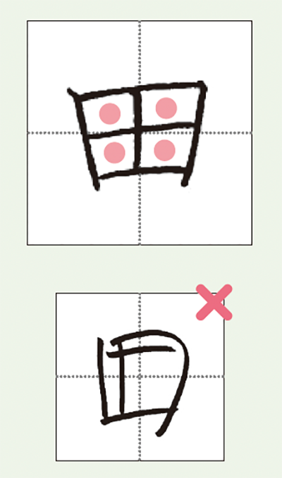 線と線の間にできる隣り合う隙間を、均等にそろえるだけで、字形のバランスが整います。