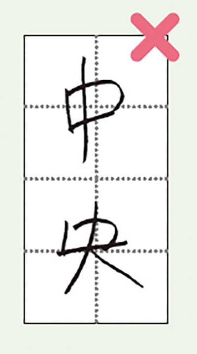 2文字以上書くときは、文字の中心を〝串刺し〟するようなイメージで、そろえて書きます。