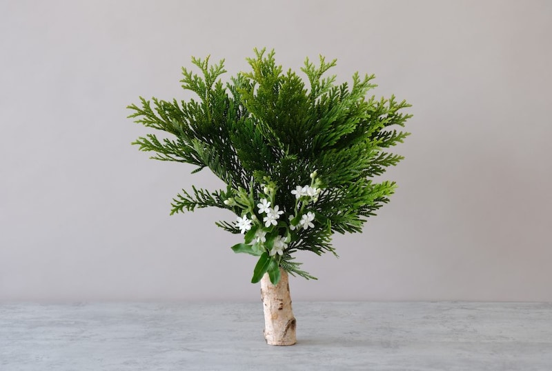 白とグリーンのシンプルな組み合わせが、冬の静けさとクリスマスの気配を届けます。