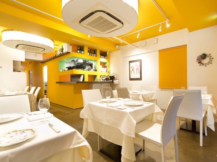 白と黄色を基調としたオシャレな店内