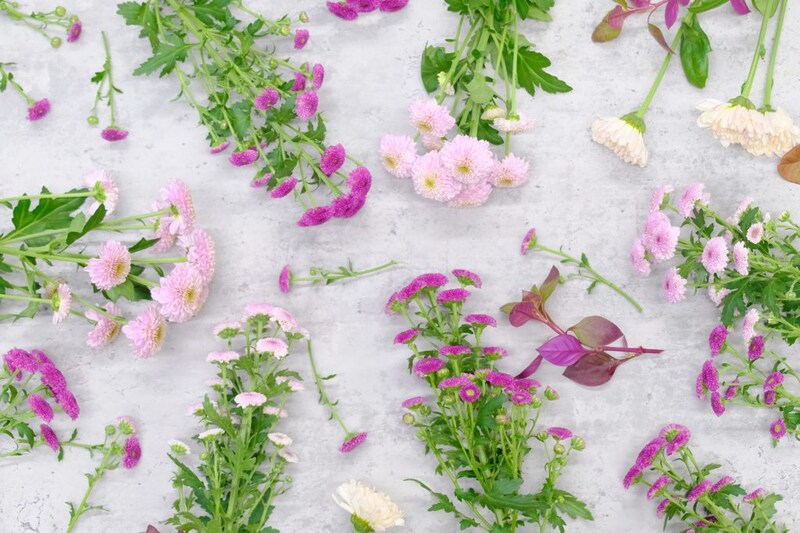スプレーマムは葉の状態がよくない場合があります。そんなときは、思い切って葉をすべて取り除き、違う葉を添えてみましょう。