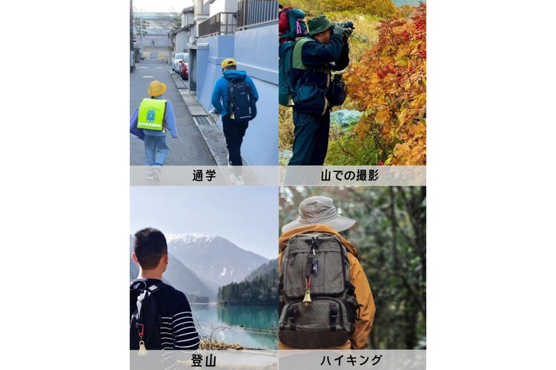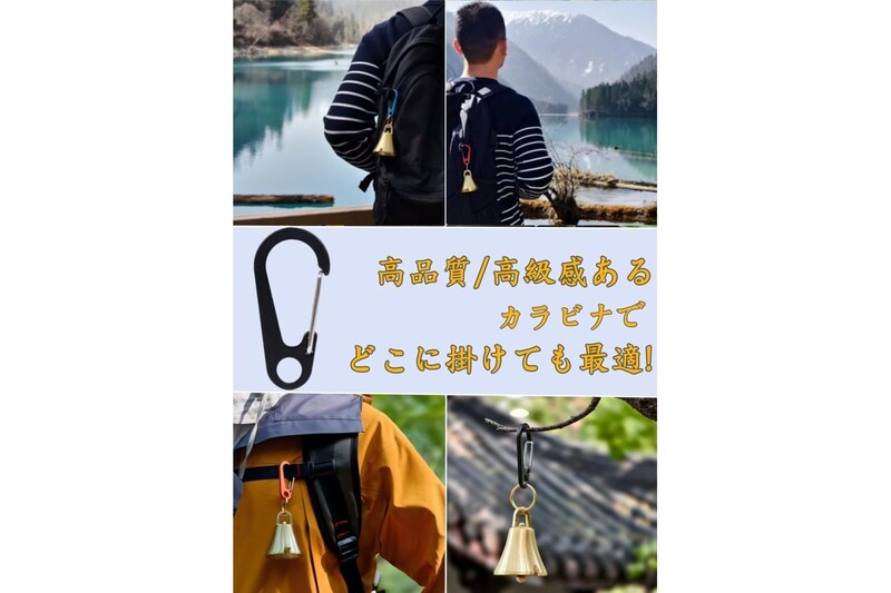 リュックやベルトに装着しやすいアルミ製カラビナが付属しており、ワンタッチで鳴り止め機能のオンオフが切り替えられるため、静かに行動したいシーンでもすぐに対応できます。